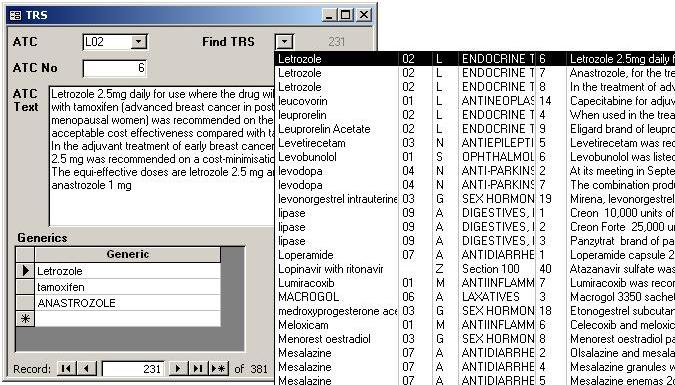 Therapeutic Relativity Sheets were added to the system in early 2007. TRS records may be searched by Generic.